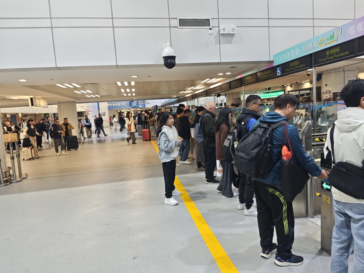 記者亦在晚上8時實地體驗,過關整體流程迅速,全程耗時約10分鐘,並未出現「打蛇餅」情形。值得一提的是,許多市民已熟練使用「刷臉」智能通關,過關順暢便利。