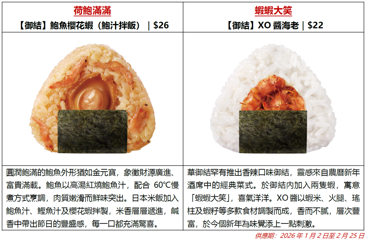 新年當然少不了好運加持。2026年1月15日至2月4日期間,每單購兩件御結,即可獲得刮刮卡一張,隨時刮出驚喜獎賞。100%中獎機會人人有份,除了有機會獲得365件御結大獎,全年有口福;更有機會獲得免費御結、自家製濃湯、罐裝飲品以及購物優惠,讓好運由新年延續一整年。