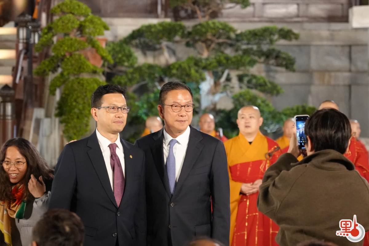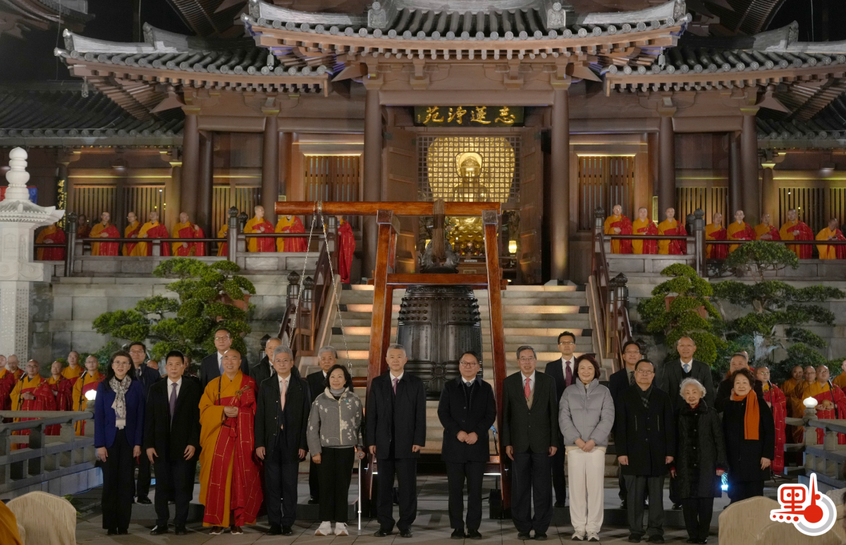 【點新聞報道】叩鐘迎新是中國自古以來的文化傳統,有祝福感恩之意。2025年12月31日夜間,「盛世鳴鐘 福佑香江」元旦祈福鳴鐘儀典於鑽石山志蓮淨苑舉行,方丈寬運大和尚等108位法師帶領大眾一同祈福,吸引不少善信參與。政務司司長陳國基、中聯辦副主任孫尚武等主禮儀典,祈求佛力加庇、盛世和合、福佑香港。