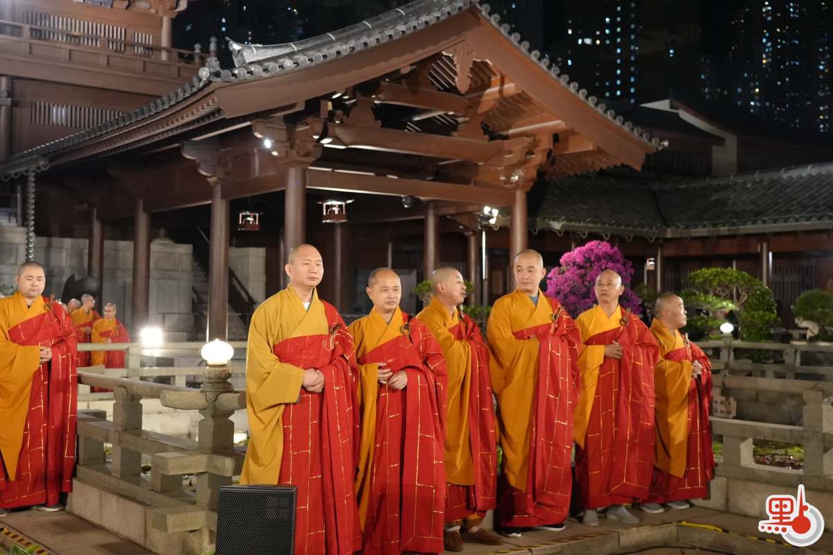晚上11時許,弦樂四重奏帶來《獅子山下》等經典曲目,隨後寬運大和尚等108位法師入場誦經。至晚上11時30分,法師開始誦經鳴鐘祈福,共敲108響。直至時間跨入2026年1月1日凌晨0時,法師叩鐘,儀式圓滿。