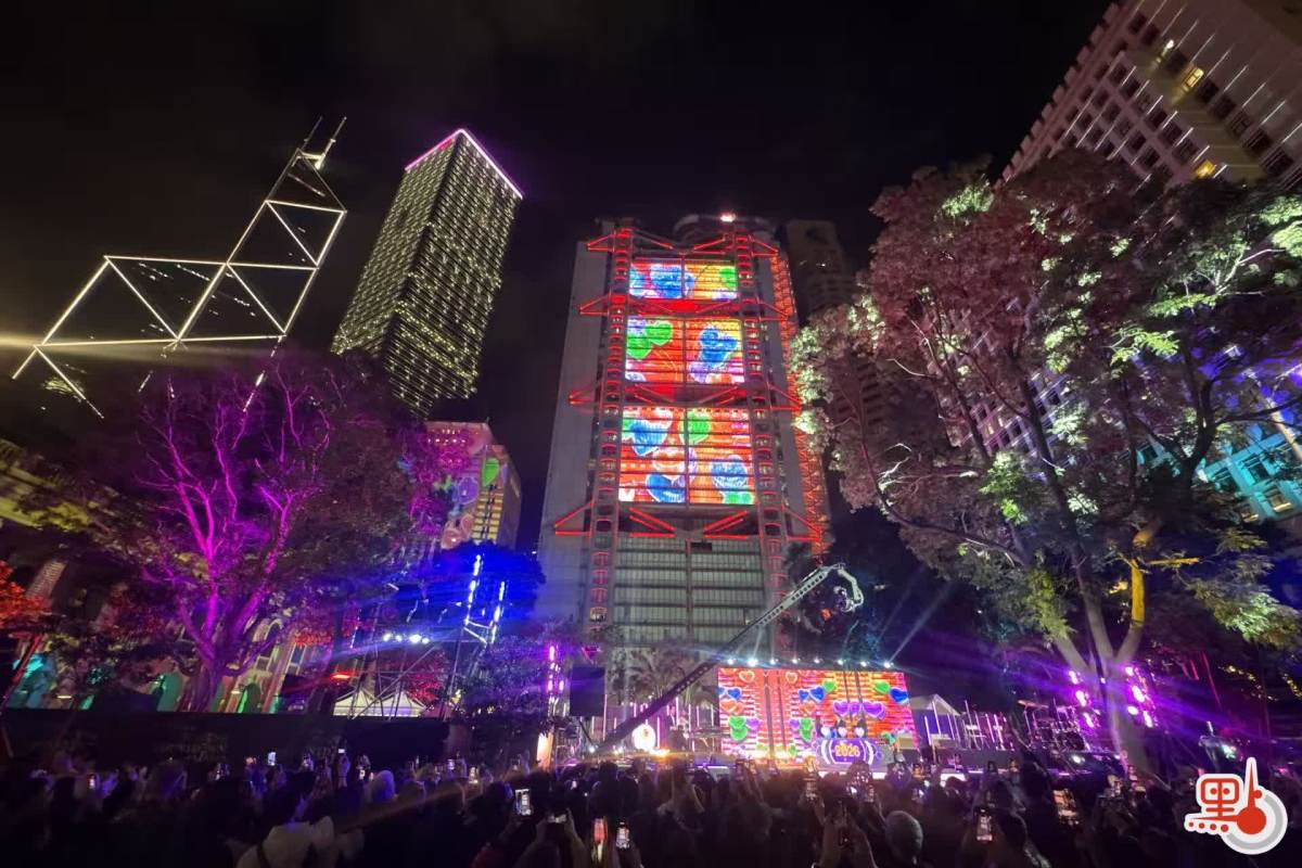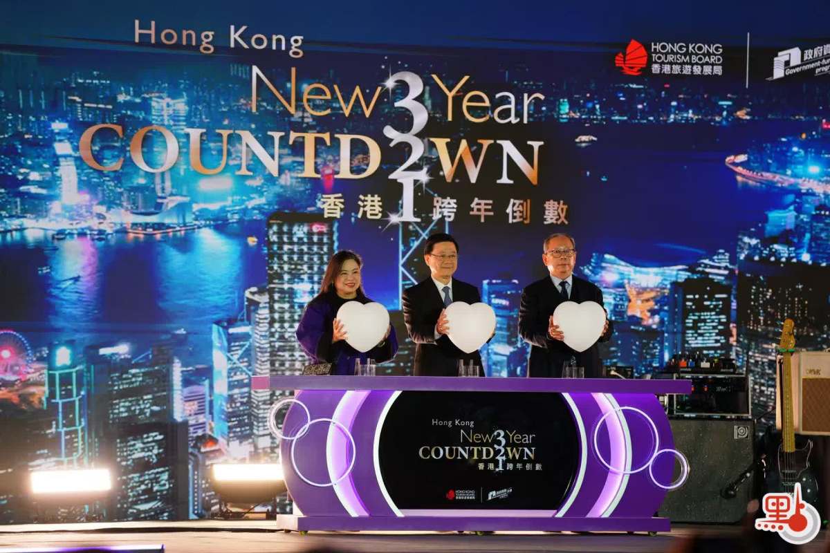 時間來到晚上11時58分,主禮嘉賓行政長官李家超、香港文化體育及旅遊局局長羅淑佩、香港旅遊發展局主席林建岳,手握愛心道具啟動倒數儀式,同時舞台背後的滙豐總行大廈外牆顯示倒數畫面,全場的市民及遊客共同完成倒數,一同邁進了新的一年。
