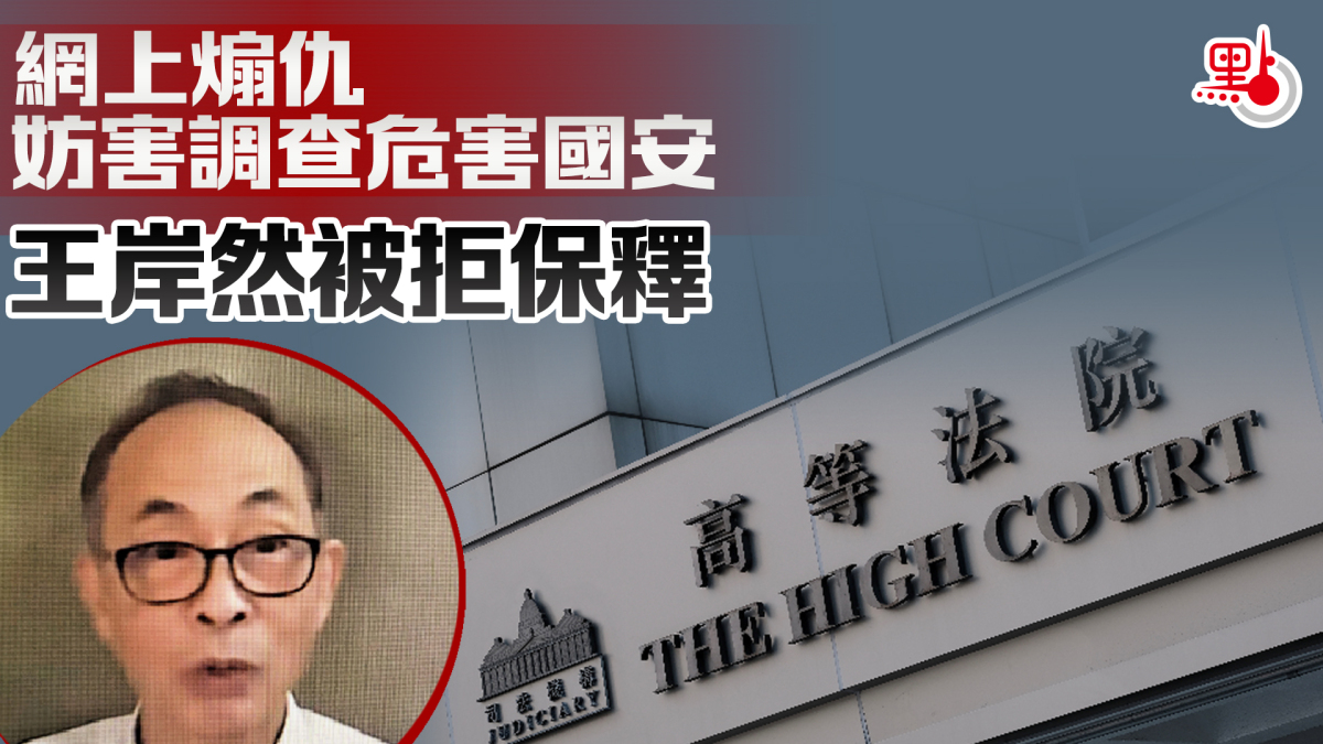【點新聞報道】前「民陣」副召集人兼時事評論員王岸然,涉非法披露與警方國安處人員會面內容,更被揭發在多個月間散布具煽動意圖的片段,被控妨害調查危害國家安全的罪行及發布具煽動意圖的刊物共兩罪,裁判官早前下令還押至1月20日再候訊。他昨向高等法院法官申請保釋被拒,繼續還押。