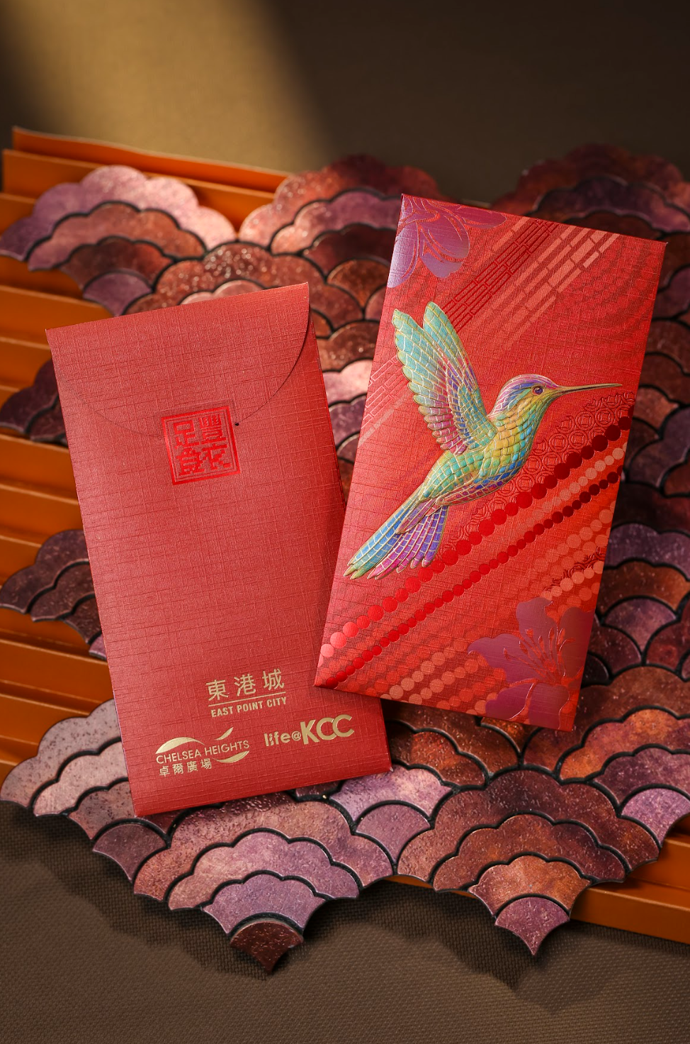將軍澳東港城、屯門卓爾廣場及葵興life@KCC攜手誠意推出「千格玲瓏」限量版精緻利是封,以匠心工藝迎春接福。利是封共4款祥瑞圖案,包括象徵年年有餘的錦鯉、寄予愛與希望的蜂鳥、寓意富貴騰達的駿馬,以及象徵富貴吉祥的牡丹。利是封設計採用手感細膩的觸感紙,結合啞色燙金、透明幻彩及精緻雕凸的印刷技術,以傳統中式藝術美學突顯古典馬賽克設計的精緻韻味,為新春佳節添上一抹華麗喜氣。