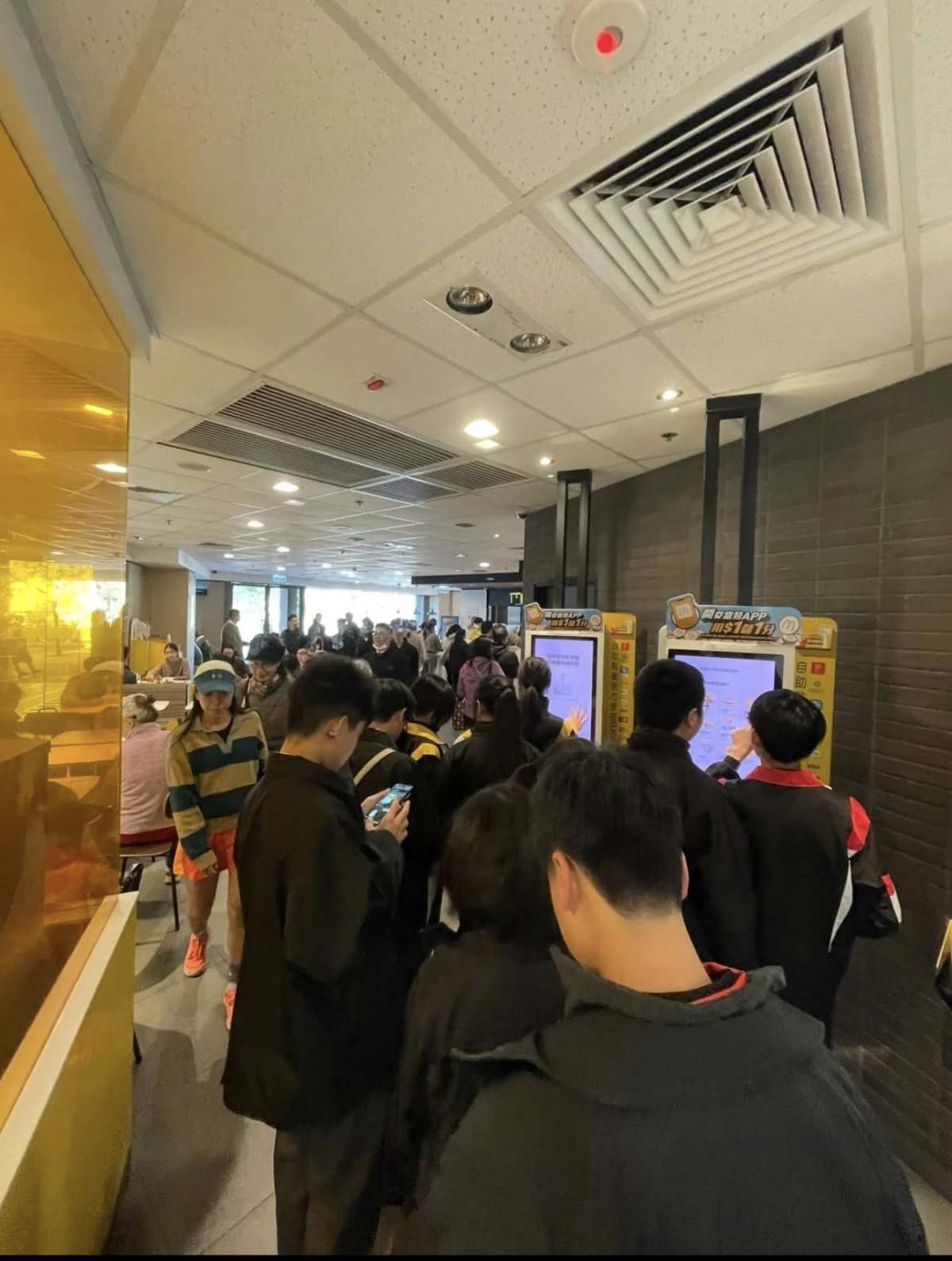據網民發文,麥當勞沙田禾輋分店今日中午湧現人潮,「未全面開學,喺lunch時間(麥當勞)已經『淪陷』晒,啱啱目測見到有班學生嗌咗20~30盒$10/9件嘅麥樂雞。」