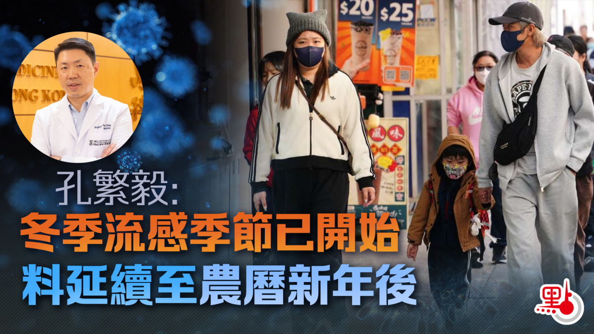 【點新聞報道】本港近日天氣明顯轉涼。港大醫學院內科學系傳染病科主任孔繁毅今日(3日)在電台節目表示,本港流感有上升趨勢,相信冬季流感季節已開始,預計1至2月流感會出現爆發,並延續至農曆新年後,直至群體免疫夠高,流感比率才會回落。