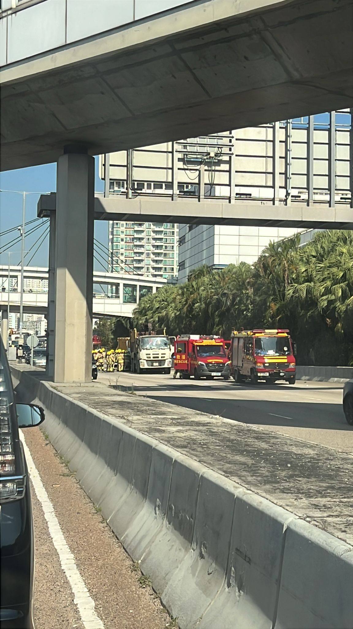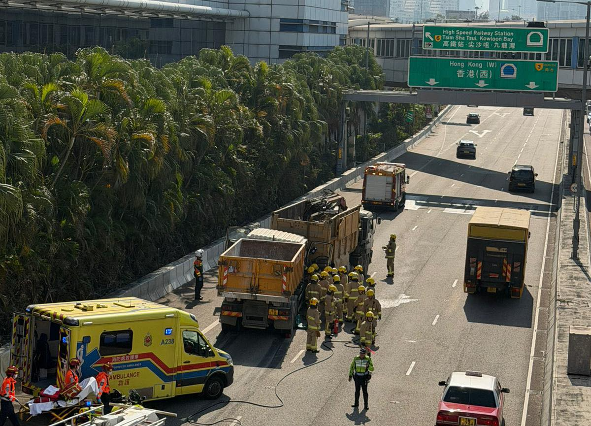 【點新聞報道】西九龍公路今日(5日)發生交通意外。早上10時46分,往香港方向近奧運港鐵站兩部貨車相撞,後車司機清醒被困車內,消防人員到場營救。運輸署表示,因交通意外,西九龍公路(來回方向)近奧運港鐵站的部分行車線現已封閉,駕駛人士只可使用餘下行車線行車,現時上址交通繁忙。