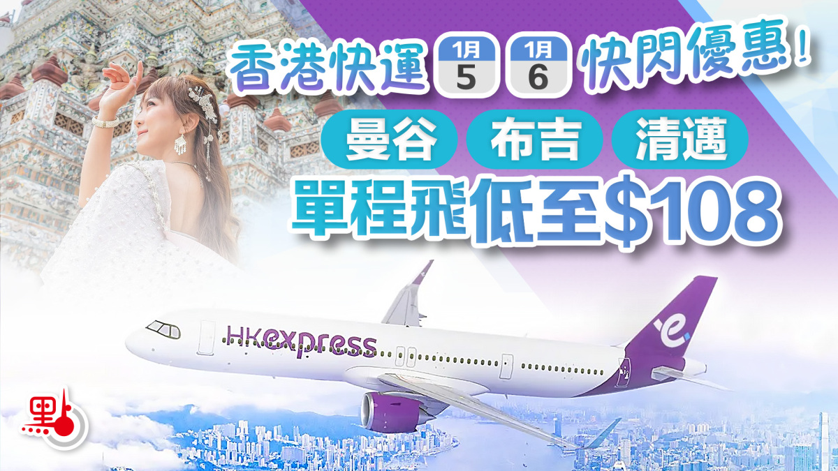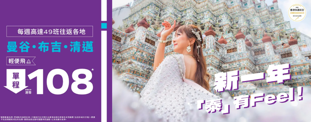 【點新聞報道】新年伊始,香港快運今明兩日(1月5日至6日)推出限時泰國航線優惠!本次優惠覆蓋曼谷、布吉及清邁三大熱門航點,單程「輕便飛」票價低至$108、「經濟飛」單程票價低至$138,每周提供多達49班往返航班。