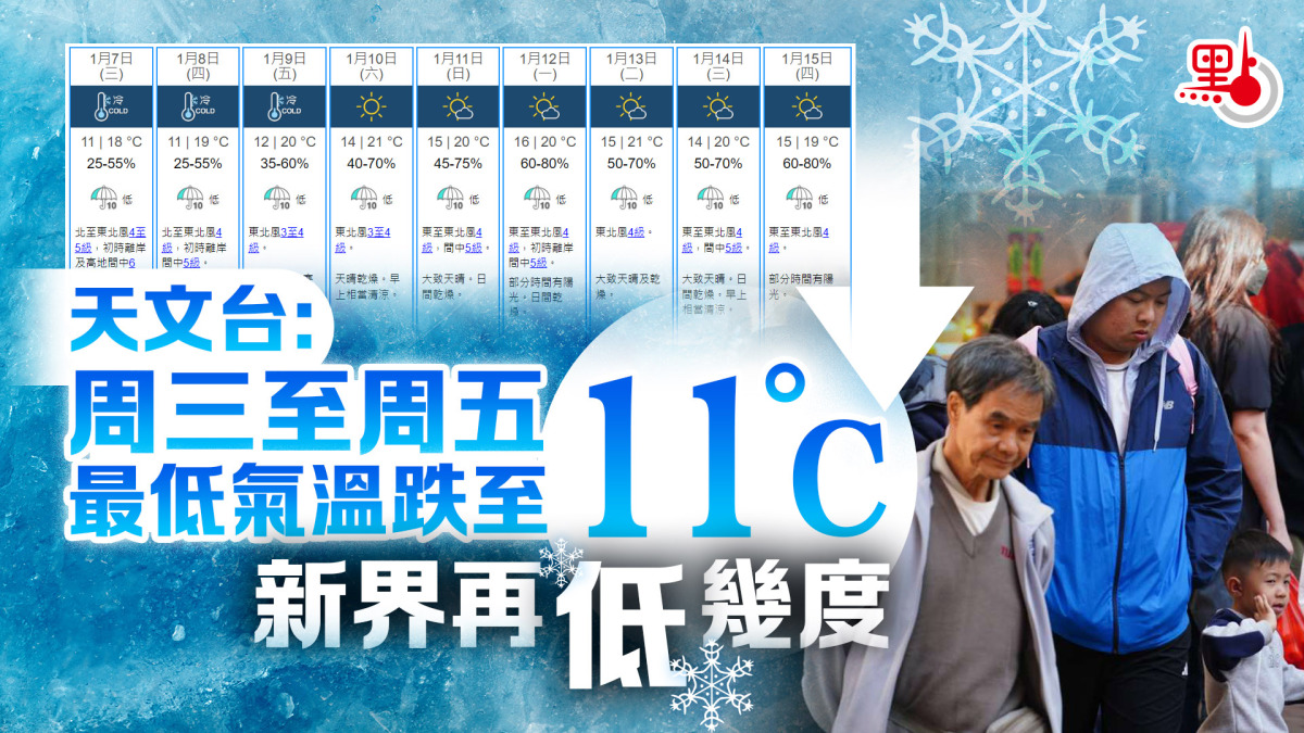 【點新聞報道】寒冷天氣警告現正生效。天文台今日(6日)上午11時45分發出特別天氣提示指出,受冬季季候風持續影響,星期三至星期五早上天氣寒冷,市區最低氣溫在11度左右,新界再低幾度。市民請注意保暖,並多關顧長者及慢性病患者,預料周末期間氣溫稍為回升,但早上仍然清涼。
