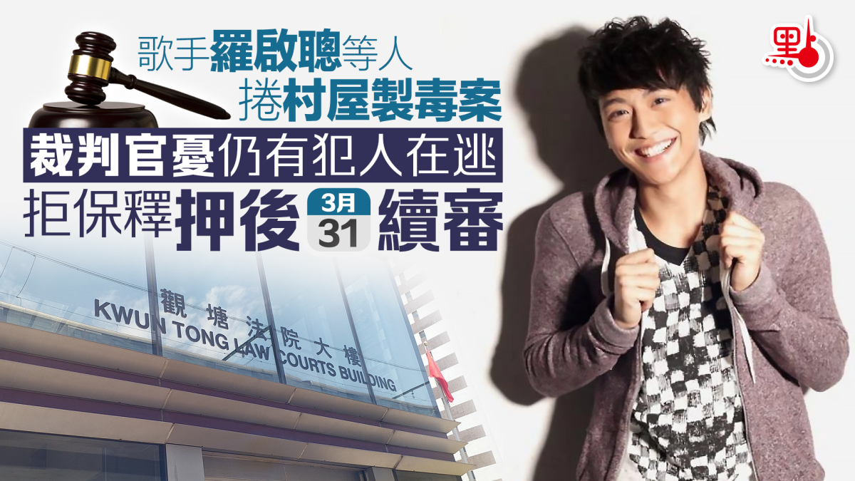 羅啟聰頭戴眼鏡,身穿黑色圓領衛衣和藍色牛仔褲,聯同另外兩名被告進入犯人欄。控方反對被告擔保申請,申請3月31日再訊,等待調查報告等文件。控方形容該村屋是活躍的製毒工場,內裏廚房,客廳和廁所陳列大批毒品,警方懷疑仍有更多人士涉案。