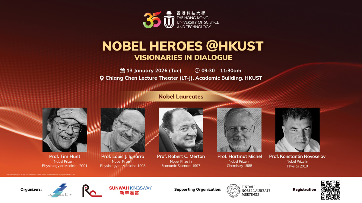 【點新聞報道】香港科技大學將於1月13日首次舉辦「諾貝爾英雄@科大」學術盛會,雲集5位分別榮獲諾貝爾獎的殿堂級科學泰斗,與公眾展開一場啟迪人心的深度對話。
