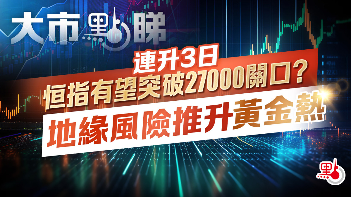 恒指自踏入2026年即見造好,並連升3日,似見準備向27000關口推進。張穎群表示,這主要是受惠於美股道指連升兩日近920點,並創出歷史紀錄新高。而A股在元旦假期後復市亦見跟大幅抽升兩日,上證重上4083關口以上,更錄得連升13個交易日的優勢,並創近10年的高位。