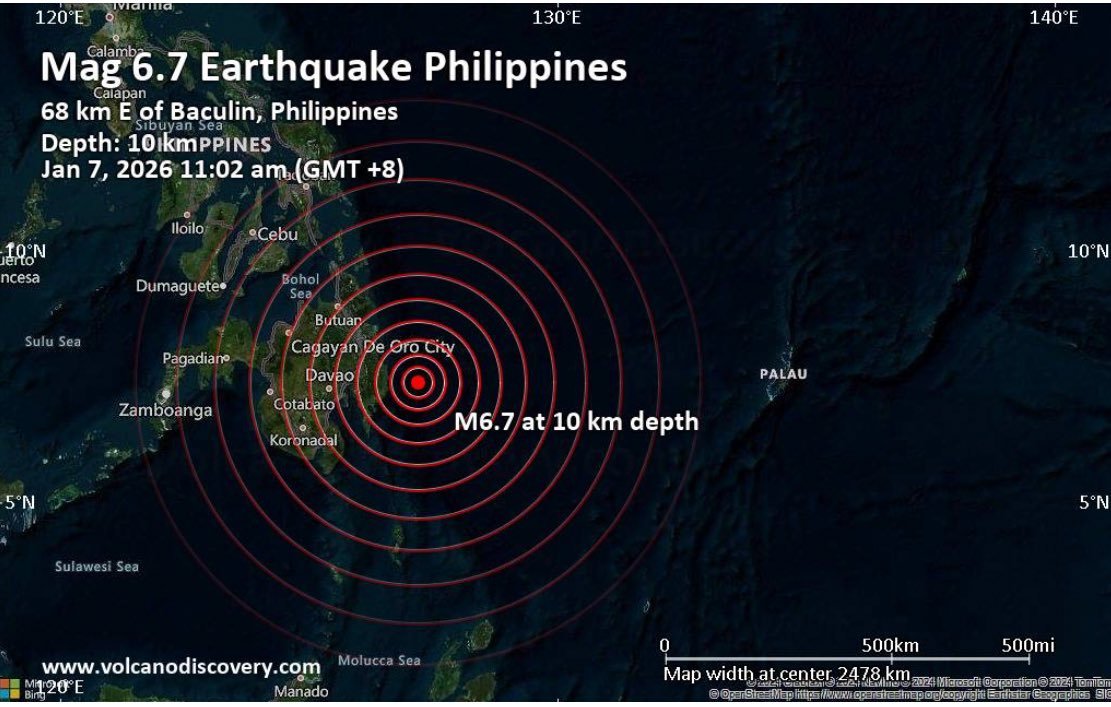 菲律賓巴庫林地區發生6.7級地震。(網絡圖片)