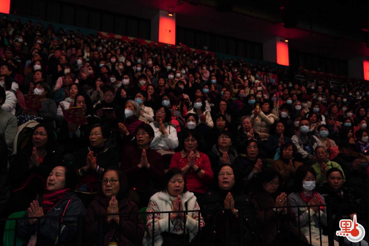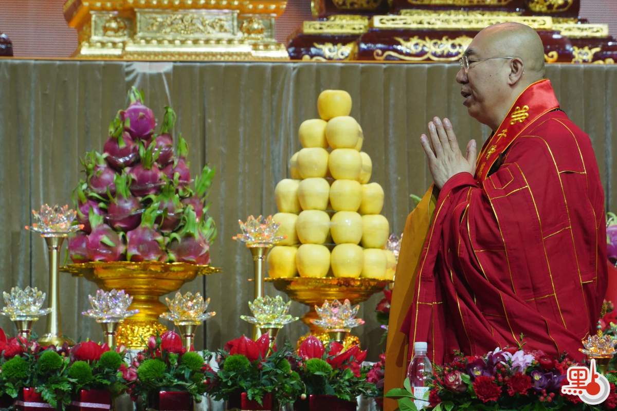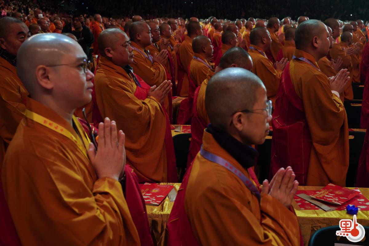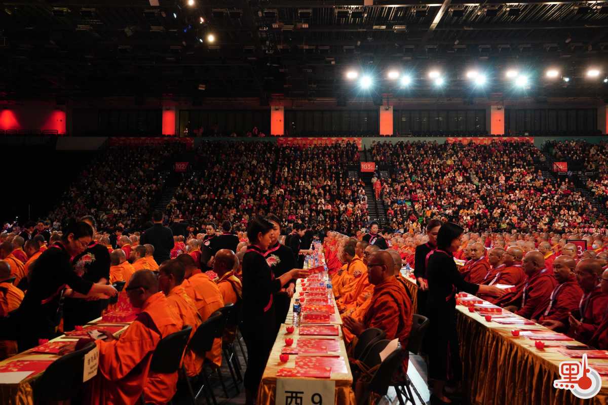 上午11時26分許,誦經儀式完畢,供僧開始。大會向參與祈福者贈與裝有食物的福袋,祝願善信福澤綿長。12時許,眾人起立、合十恭送法師離席,至此法會圓滿。由1月3日至今日,法會於香港啟德體藝館舉行一系列活動,包括「禪悅」梵唄共賞、「盛世梵音 福佑香江」音樂會等。