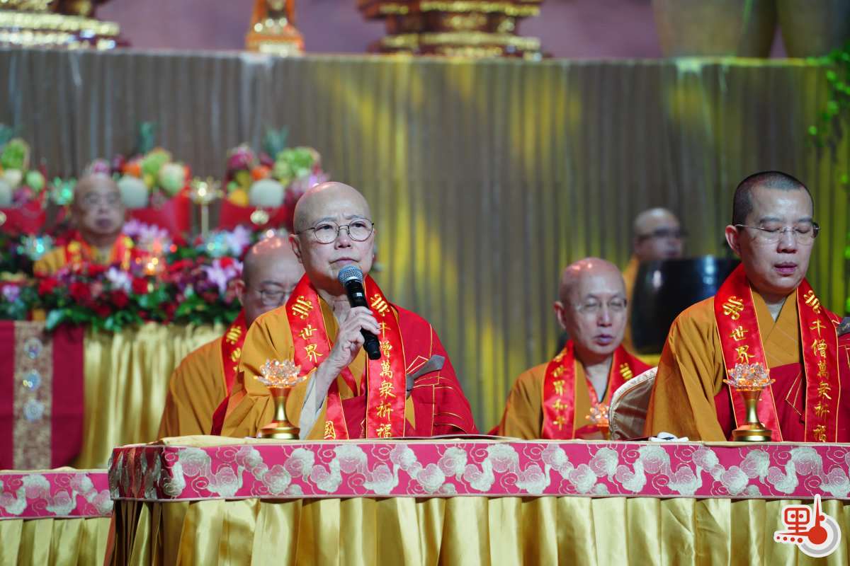 寬運大和尚表示,今次大法會千僧共聚、萬眾同心,祈願世界和平、國泰民安、人民安樂吉祥。寬運大和尚帶領眾僧人及市民進行迴向,表示願以此功德迴向中華人民共和國、香港特別行政區,願國家繁榮昌盛、安居樂業,香港百業興旺、社會安定。