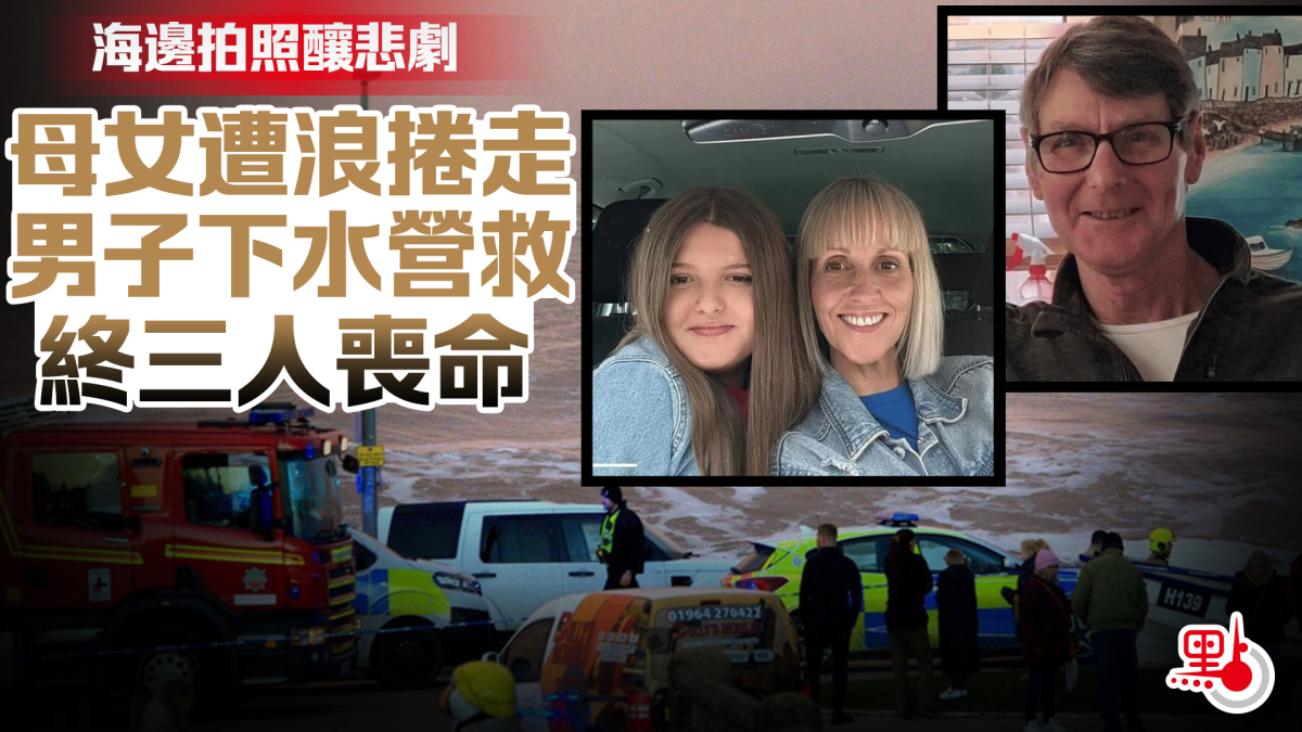 【點新聞報道】英國一對母女,在威瑟恩西海灘被巨浪捲走,一名路人見狀跳入海中試圖營救,最終釀成三人喪命的悲劇。