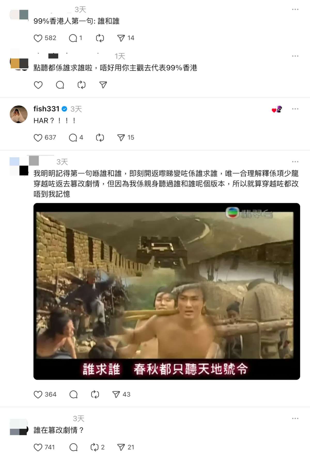 對此網友借用歌詞笑稱:「誰在篡改劇情?」