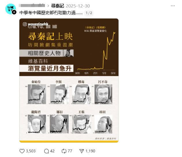 相關歷史人物的維基百科瀏覽量近期也急上升,網友稱「學生時代考中國歷史都沒有這麼勤奮」。
