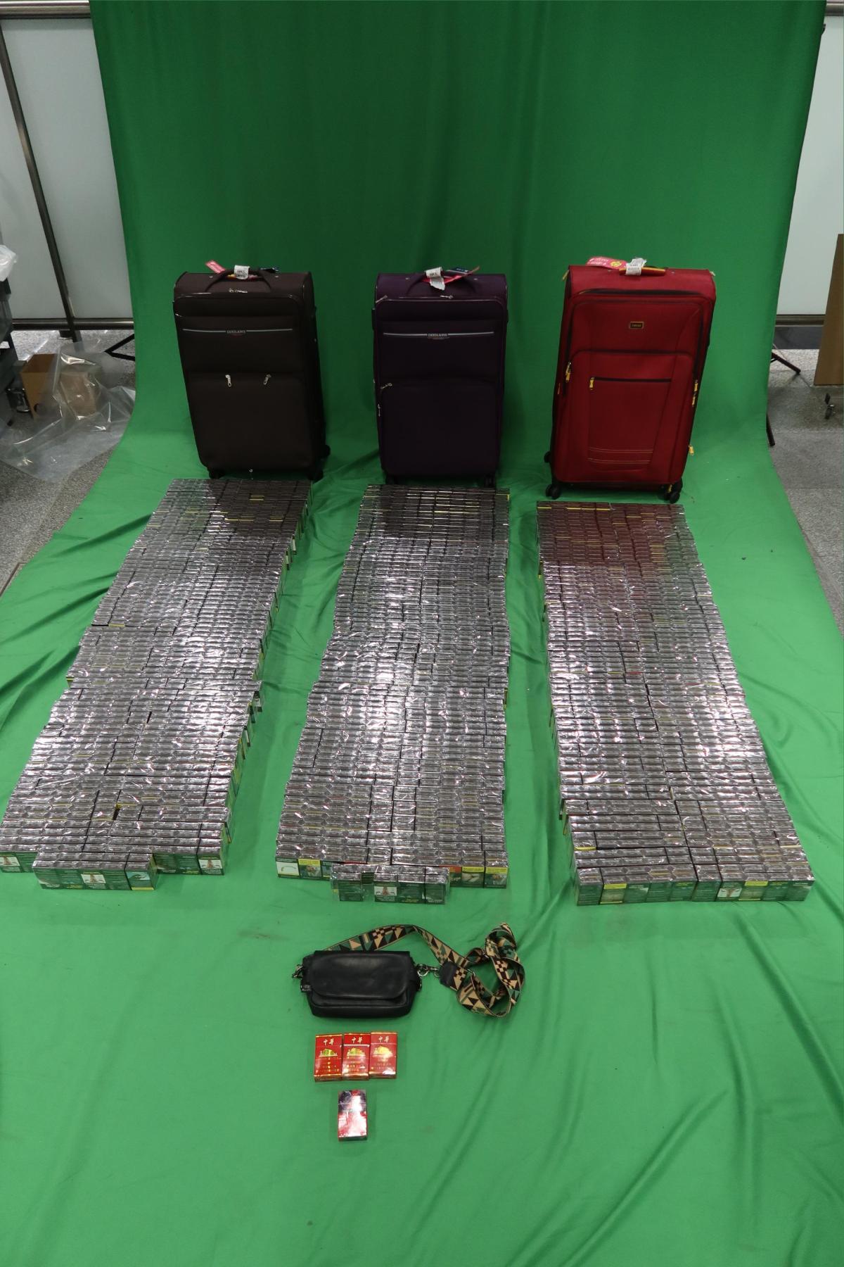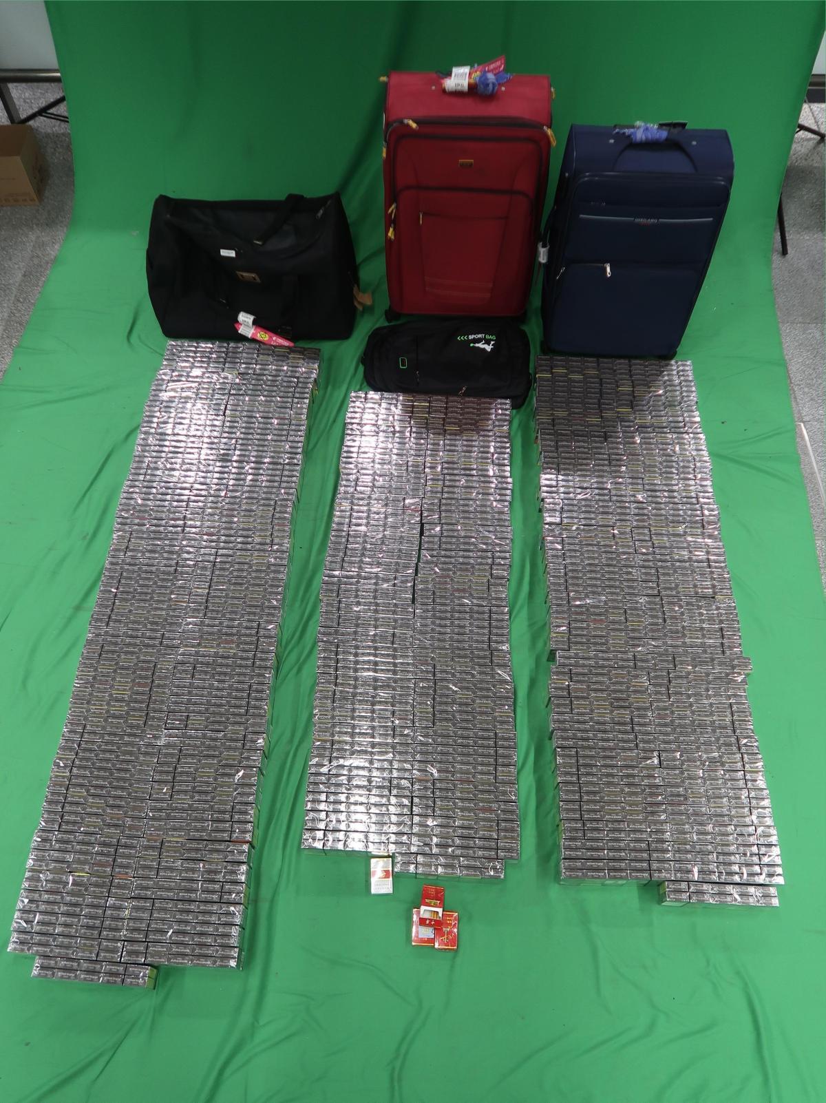 海關人員昨日(6日)在香港國際機場截查3名分別42歲、38歲和31歲抵港男旅客,在前兩者攜帶的個人行李內分別檢獲約4.5萬支和4.4萬支未完稅香煙,市值均約20萬元,應課稅值均約15萬元。而在31歲抵港男旅客攜帶的個人行李中,海關人員檢獲約5800支未完稅香煙,市值約2.6萬元,應課稅值約2萬元,以及2.7萬支另類吸煙產品及31部另類吸煙產品的器具,市值約8.1萬元。該3名旅客隨即被捕。