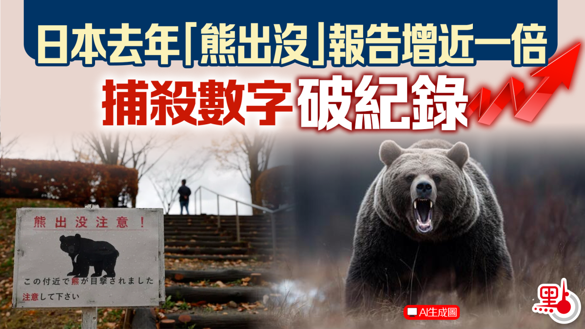 日本環境省公布,在2025年4月至11月,全日本的熊出沒報告約為4.7萬宗,是自2009年有記錄以來最高,較之前2023年2.4萬宗大幅上升近一倍。而被捕獵的熊隻,有12,659隻,是自2006年有記錄最高的數字,比2023年9,276隻亦大明顯上升。
