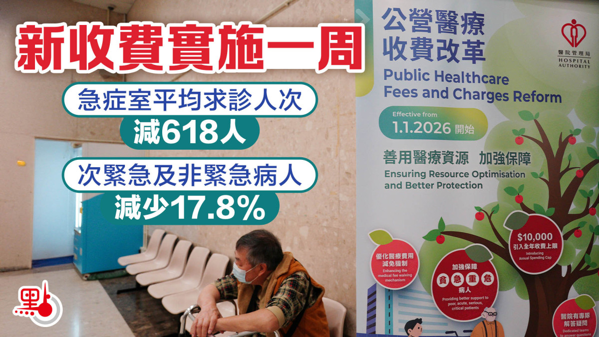 【點新聞報道】醫院管理局發言人今日(8日)表示,公營醫療收費改革實施一星期以來,公立醫院急症室運作暢順,整體求診人次有所減少。公營醫療收費改革實施首星期(1月1日至7日),急症室每日平均有4592人求診,較去年日均求診人次減少618人。過去一星期,急症室的平均求診人次為每日4592人,平均每日有258名危殆及危急病人(5.6%)、2011名緊急病人(43.8%)、2323名次緊急及非緊急病人(50.6%)。相比2025年全年,醫管局轄下急症室的平均求診人次為每日5210人,平均每日有228名危殆及危急病人(4.4%)、2156名緊急病人(41.4%)、2826名次緊急及非緊急病人(54.2%)。