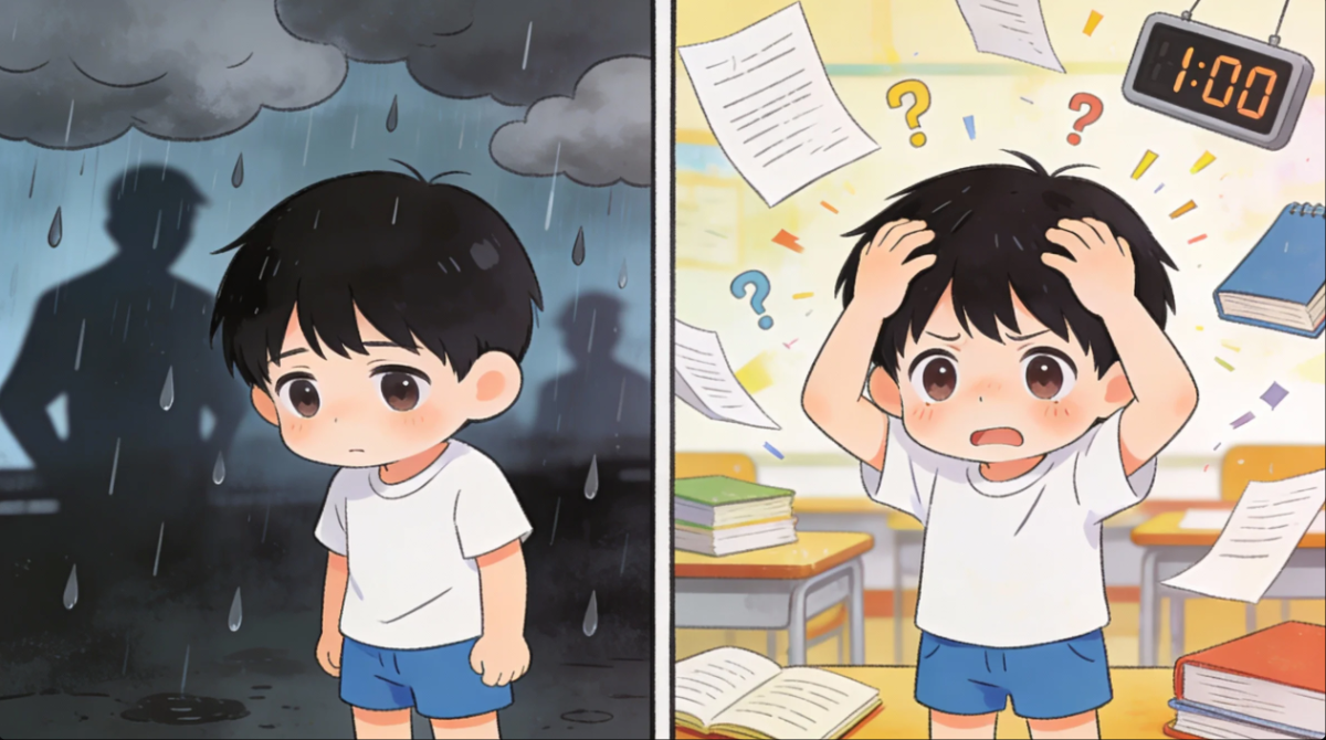 張傳義博士認為,焦慮通常早於抑鬱出現。五、六歲的幼兒就可能出現分離焦慮(如害怕父母出事、怕父母會不見了);小學生則面臨學業、社交等多重壓力。相比之下,抑鬱多在高小或初中階段才較明顯,因年幼兒童對負面事件記憶較短暫,「過幾天就忘了」是常態。