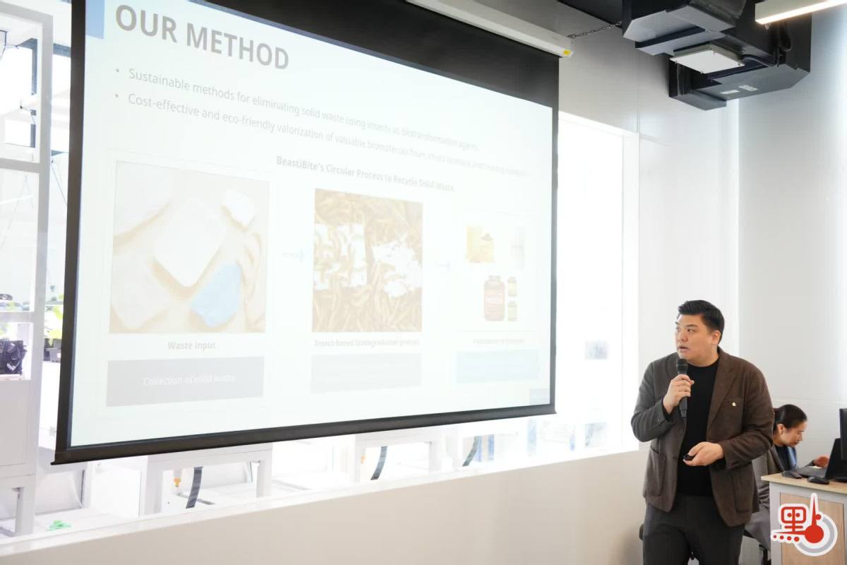 以昆蟲生物精煉技術為例,浸大化學系助理教授呂育儒表示,現時塑膠垃圾難以降解,導致垃圾處理過度依賴堆填區。考慮到微塑膠問題越趨嚴重,項目利用黃粉蟲作媒介,結合專屬催化劑及人工智能技術,顯著提升昆蟲對塑膠的攝取及分解效率。同時,團隊亦從昆蟲生物質中提取蛋白質及甲殼素等高價值材料。他強調,新技術並非單純處理垃圾,而是突破傳統限制,達致增值作用,為工業、醫療及保健等領域提供可行的循環經濟解決方案。
