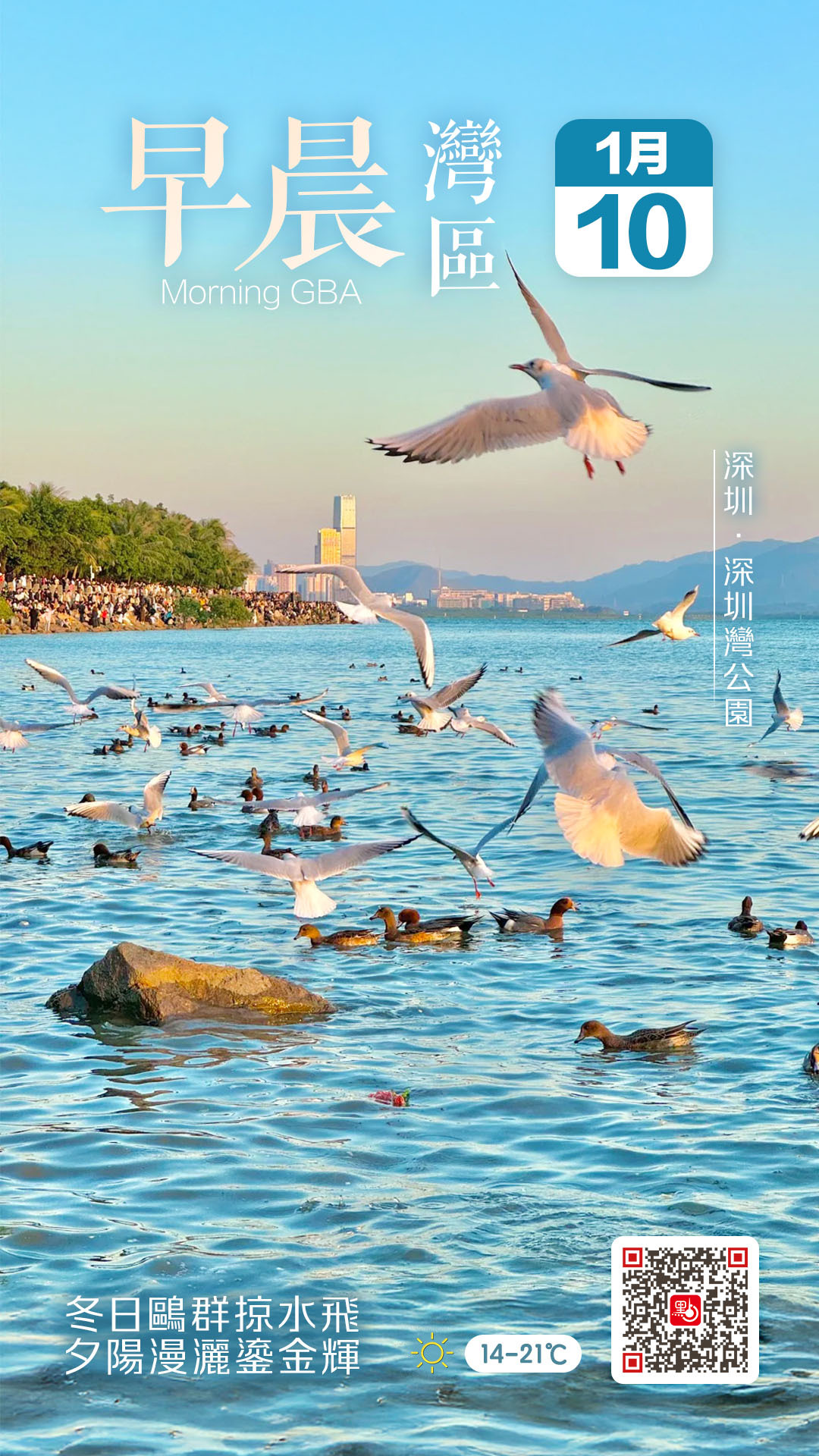 【點新聞報道】周末將至,是否想規劃一場別具風格的悠閒之旅?點新聞今日(10日)帶你走進深圳灣公園,這裏不僅是日常散步、騎車的好去處,更藏着浪漫而充滿動感的冬日景致——成群海鷗翩然掠過海面,與夕陽餘暉交織出電影畫面般的氛圍,隨手一拍皆是大片感!