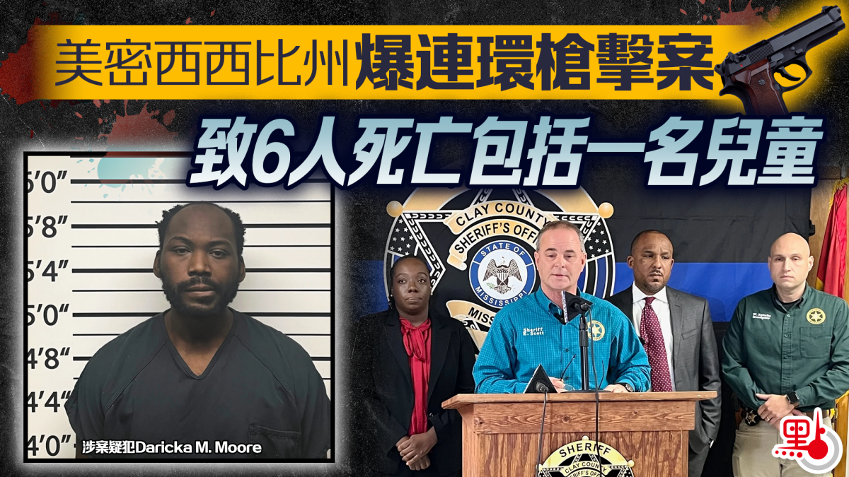 【點新聞報道】近日美國密西西比州發生連環槍擊案,造成6人死亡,其中包括一名兒童。目前涉案疑犯已被逮捕,將面臨一級謀殺指控。