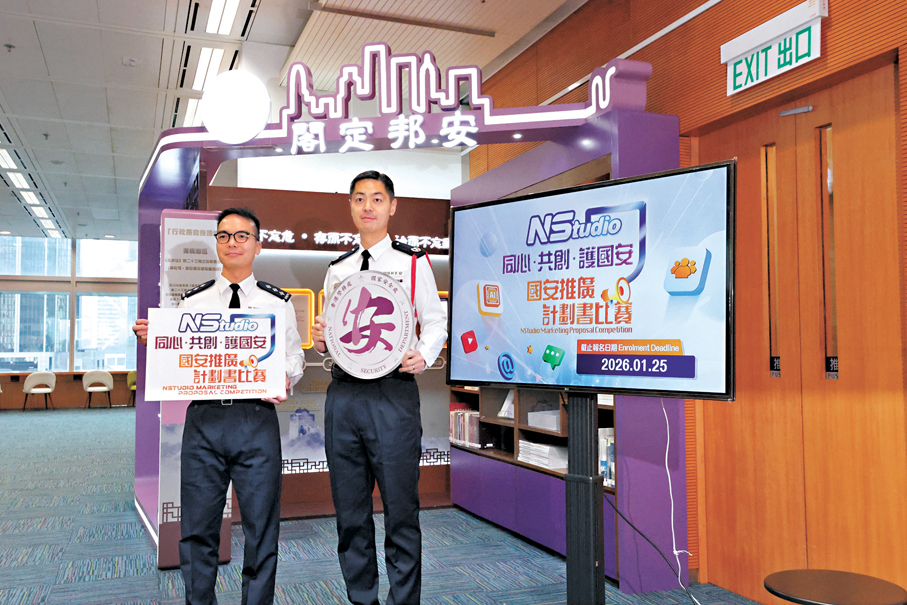 活動方面,警隊早前透過設置「NSmart」問答遊戲機及「NSpeed」國安快遞宣傳車,以互動有趣形式增加年輕人對國家安全的認知,去年亦舉辦了「NStory」短視頻創作比賽以提升年輕人的參與度。到今年,警隊重點推出「NStudio同心·共創·護國安國安推廣計劃書比賽」,希望年輕人利用自己的創意設計推廣方案。