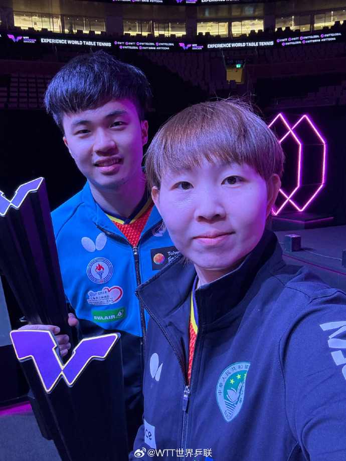 賽後,WTT更放出了林昀儒和朱雨玲的合照,後者摘得WTT多哈冠軍賽女單冠軍。這不僅是中國台北選手及中國澳門選手的合照,還是「00後」及「90後」的「跨時代」選手合照。