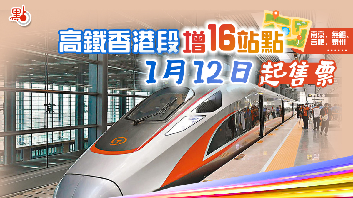 【點新聞報道】高鐵香港段將於本月26日起新增16個直達站點,令從香港乘搭高鐵可直達的站點總數突破100個,達至110個站點。今次新增站點包括屬於「個人遊」城市的南京、無錫、合肥等文化古都,以及清遠、泉州等旅遊熱門地點。