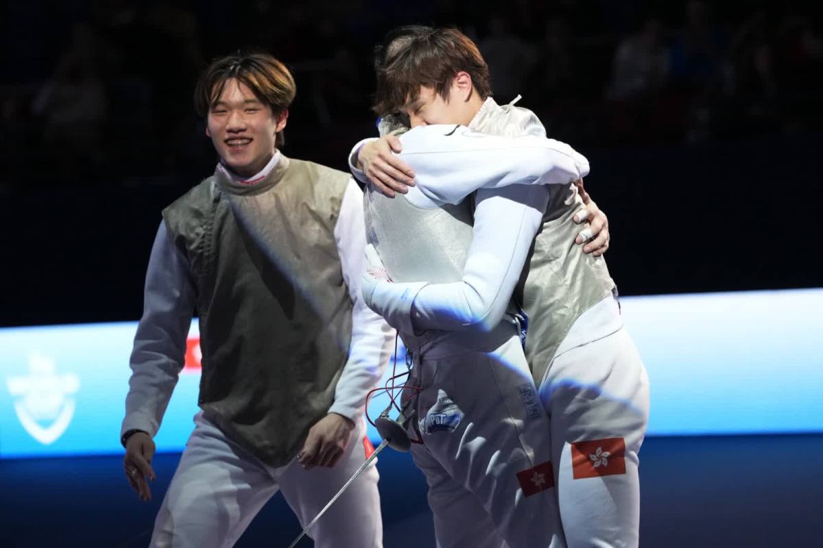 【點新聞報道】以兩名男花猛將蔡俊彥及張家朗為首的香港男子花劍隊,周日(11日)在巴黎世界盃團體賽聯同師弟林浩朗、鄭鐵男過關斬將,決賽以45∶38擊敗「世二」美國隊,相隔20個月繼主場後再次登上世界盃團體冠軍寶座。