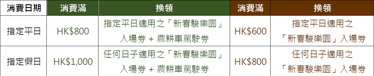指定假日:活動期間之星期六、日及2026年2月16日至20日(年廿九至大年初四)