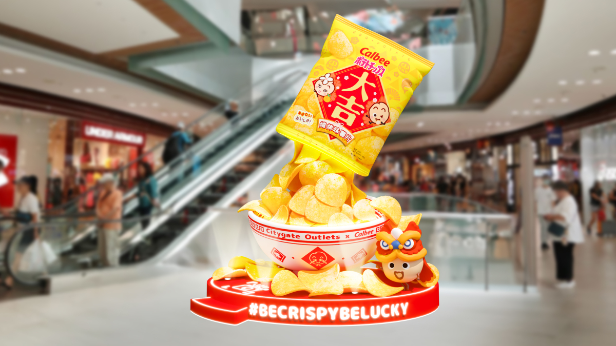 設八大新春「脆」味打卡裝置,以巨型Calbee產品包裝及四大經典角色(Jagabee Potta、Pote Kun、河童蝦家族、Jagarico長頸鹿)換上賀年服飾呈現,包括巨型薯片袋傾瀉、棋盤樂園、財神Jagabee Potta等,寓意「薯」滿缽滿、財源廣進。