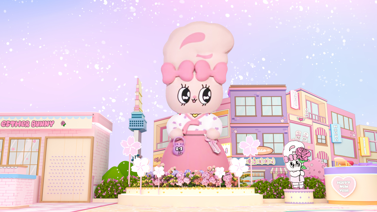 商場披上粉紅櫻花花海,設6大浪漫IG打卡位及心跳遊戲區;Esther Bunny家族角色(Ribbon Bunny、Lavender Bunny、Cream Bunny、Blue Bunny)登場,帶領訪客遊玩。