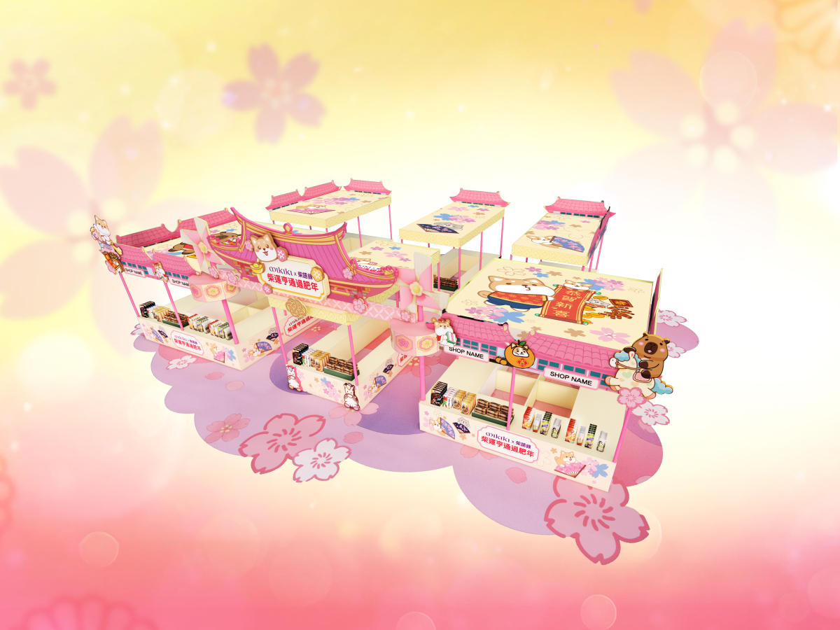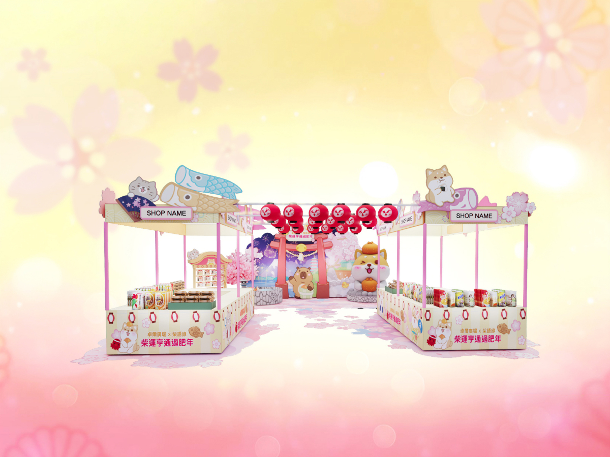 設4大和風打卡及遊戲區,包括:逾2.3米高巨型柴犬泡暖湯合影、開運鳥居及日式繪馬牆、浪漫櫻花印花地貼、「日式魚池釣魚樂」遊戲。