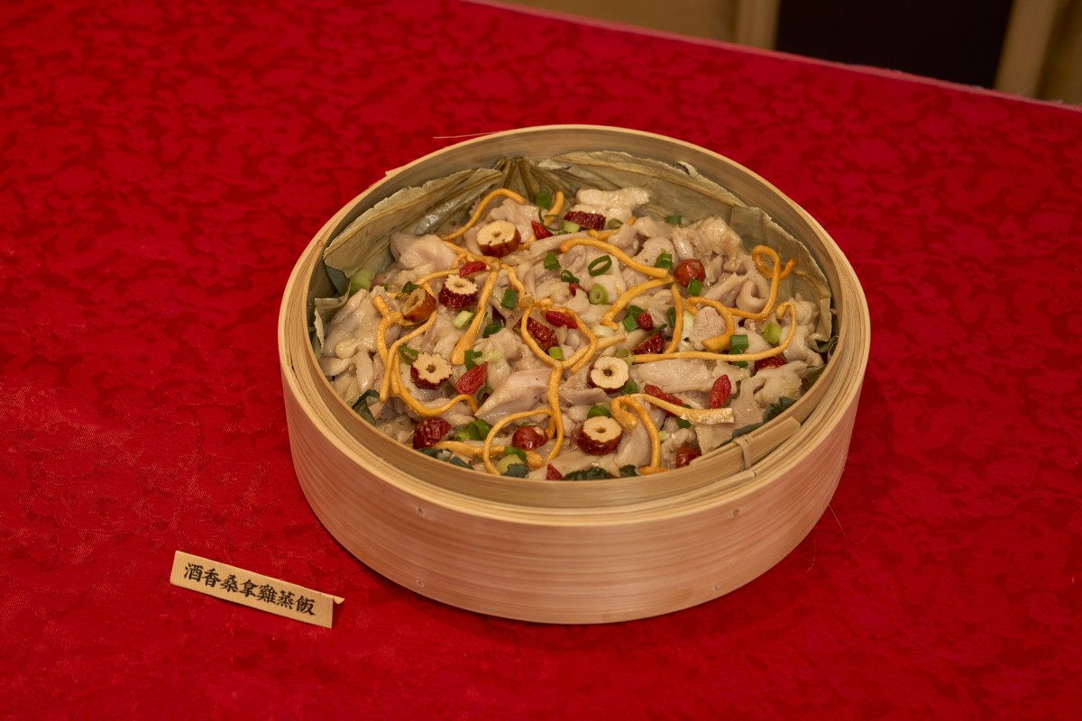咸蛋黃帶子酥、酒香桑拿雞飯、好運脆皮年糕。