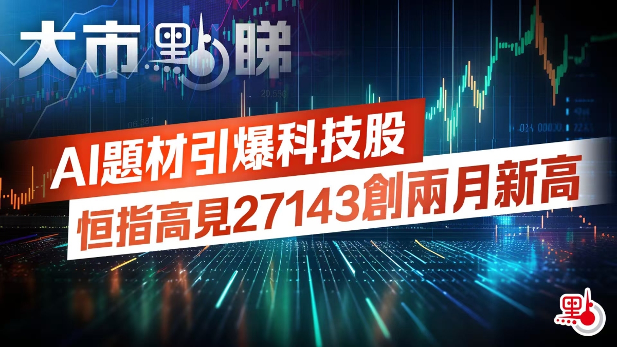 【點新聞報道】港股今日(13日)再延升勢繼續高開高收,曾重上27000關口以上。早上三大指數齊跟大幅高開後,再同步向上擴大升幅。恒指率先突破關口至高見27143,最多升535點。而國企指數和科技指數則分別最多升170點及137點。惟近高點即遇沽壓,各指數齊收窄大部分升幅。午後沽盤突見增加,並將各指數升幅再度收窄,科技指數更曾回落倒跌。隨後續在附近橫行至收市。