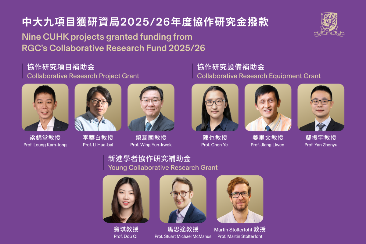 【點新聞報道】香港研究資助局日前公布「2025/26年度協作研究金」撥款結果。香港中文大學今日(13日)宣布,共有9個研究項目合共獲得逾5200萬港元撥款,當中包括3項協作研究項目補助金、3項協作研究設備補助金,以及3項新進學者協作研究補助金,獲資助項目涵括天文學、先進材料、醫學科學、人工智能及文化數據分析等多個前沿領域。