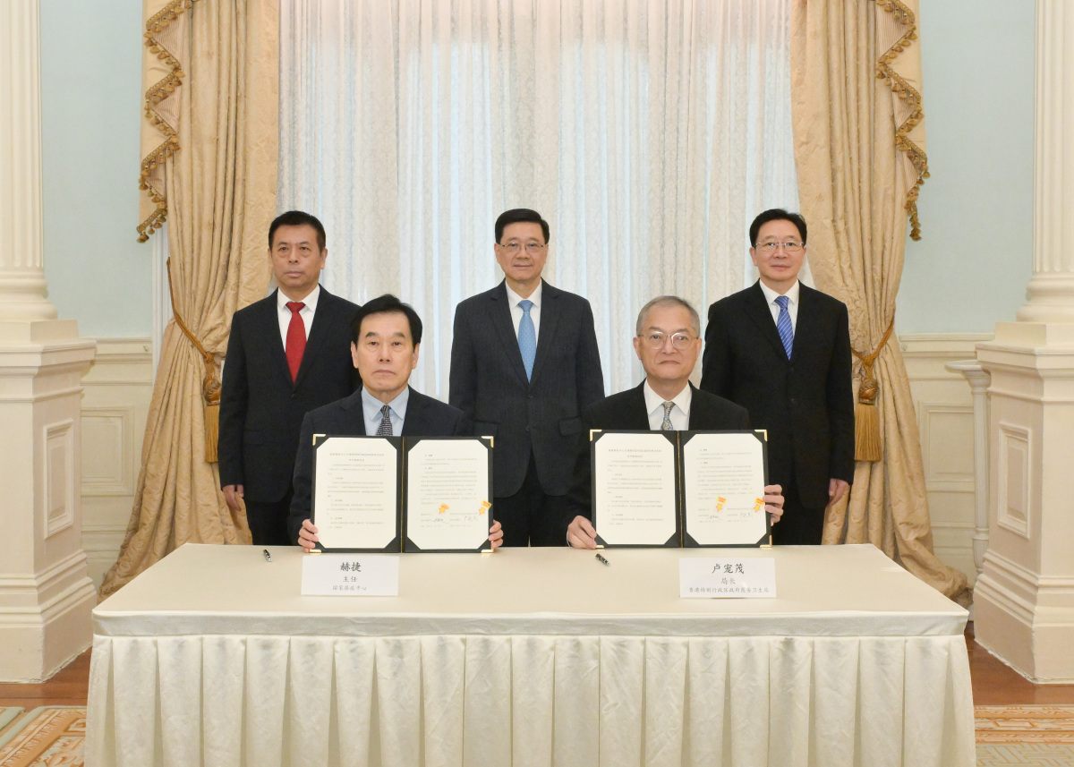李家超感謝國家一直支持香港在醫療衞生方面的工作,他說,特區政府非常重視與國家衞健委和國家中醫藥管理局的合作,今日簽署的兩份協議進一步加強相互合作,同時推進香港醫療衞生高質量發展。特區政府深化醫療改革,強化基層醫療,促進粵港澳大灣區協作,今次合作落實他在2025年施政報告提出的政策,積極推動中醫藥發展,建設香港成為中醫及中藥走向世界的橋頭堡,持續提升癌症預防、篩查、診斷和治療,創建和加強癌症預防和控制領域上的合作平台,讓香港市民享有更優質、更高效、更全面的醫療服務,為內地和香港居民創造更大健康福祉。香港會繼續發揮背靠祖國、聯通世界的獨特優勢,促進大灣區醫療合作,共同為推動國家「健康中國」的重要戰略作出貢獻。