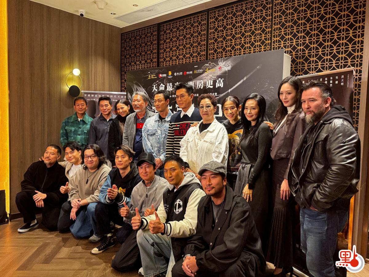 票房報捷,古天樂心情大好。在與宣萱、郭羨妮及朱鑑然合影「全家福」時,更重現25年前劇集版的幽默本色,俏皮地向鏡頭送出飛吻,引得現場歡笑不斷。