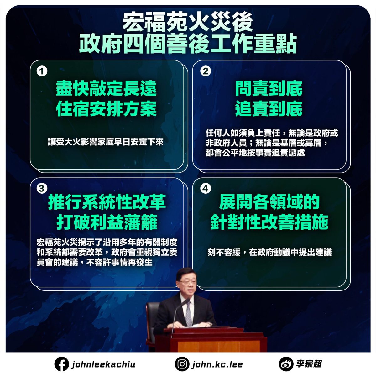 (有片)宏福苑善後|李家超:問責到底追責到底 無論是否政府人員、高層或基層都會按事實追責懲處
