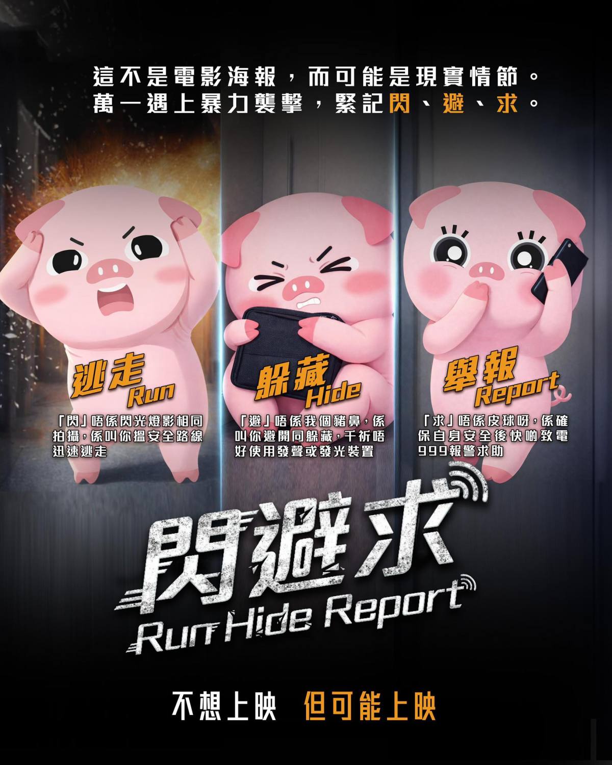保安局話你聽,「千祈唔好圍觀,唔好掛住拍片!」留在現場只會令自己更危險,甚至阻礙其他人逃生。當遇到危險,第一時間就要「閃!避!求!」。「閃」不是閃光燈影相同拍攝,係要找安全路線迅速逃走;「避」是避開同躲藏,千萬不要使用發聲或發光裝置;「求」是確保自身安全後致電999報警求助。記住,生命安全先最緊要,有機會就要離開現場呀!