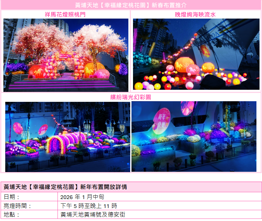 黃埔天地「幸福緣定桃花園」逾200個燈籠打造4大新春打卡位