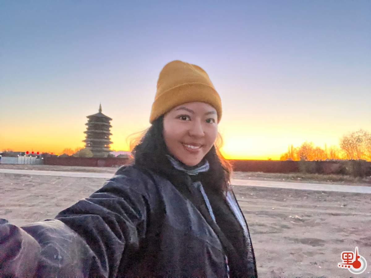 我抵達應縣時,已是日暮時分,塔影橫斜。冬日的陽光照着塔身,整個世界被罩進一層暗金色裏。工作人員正準備關門,不再讓人入內。我只得在外圍繞行,沿着塔外那片小公園慢慢踱步。