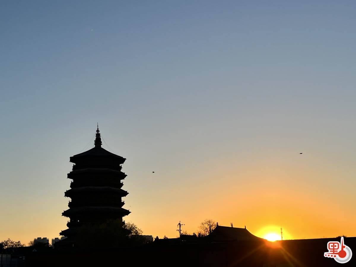 天色漸暗,木塔那層暗金色已經退去,只剩一抹黑色的輪廓。我在牆外一站就是個多小時,看着夕陽逐漸落盡,公園裏的老人早已收起球拍,風變得更冷冽。我知道,自己與這座塔之間,還欠一次真正的「相見」。臨走前,我回望木塔最後一眼,她在夜色中顯得越發莊嚴肅穆。不知道,一千年以後,當我們早已化為塵土,這座塔,會否依然靜立?