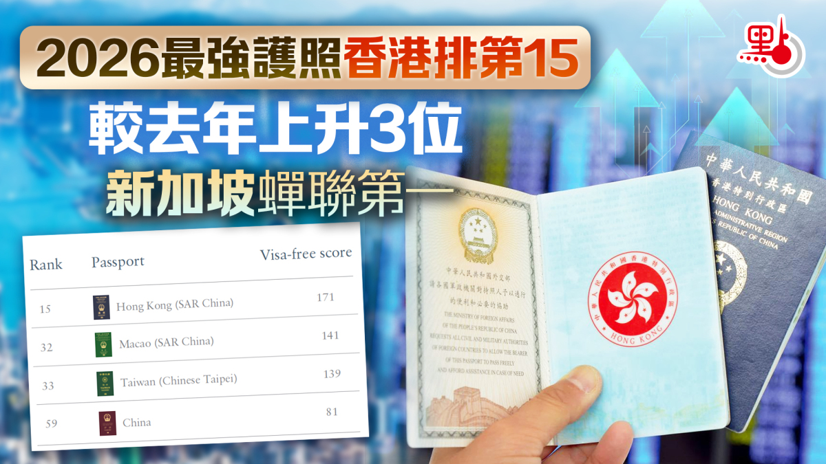 該排名顯示,香港有171個國家和地區目的地免簽,在最新的排名中衝到了全球第15名,較去年上升3位。香港入境事務處則在官網標明,現時已有174個國家和地區給予港人免簽證或落地簽證安排。