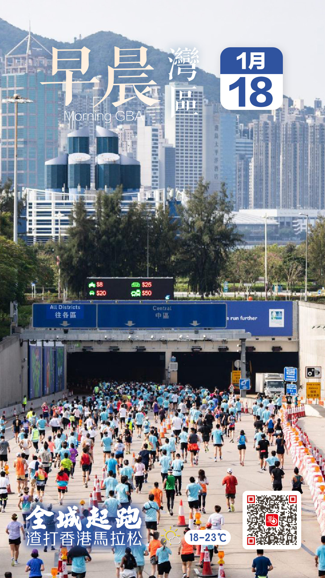 【點新聞報道】渣打香港馬拉松2026今日(18日)舉行。賽事吸引約7.4萬名跑手參與,各組別已由清晨5時10分起陸續起跑。其中,全程馬拉松及半程馬拉松的跑手從尖沙咀彌敦道出發,而10公里賽事的跑手則以東區走廊為起點。