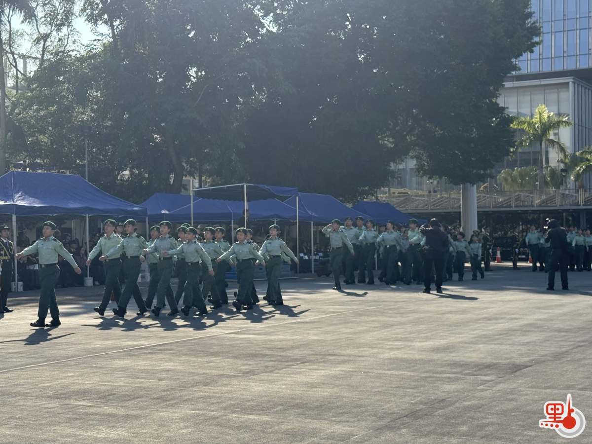 今日下午3時,香港輔警總部的檢閱廣場上,穿着青少年軍制服的同學們筆挺地站着軍姿,意氣風發,準備經過檢閱台時展現出最好的精神面貌。