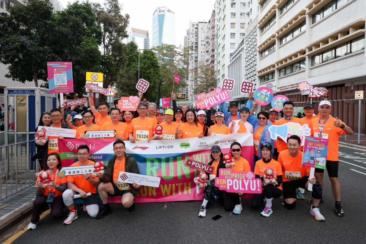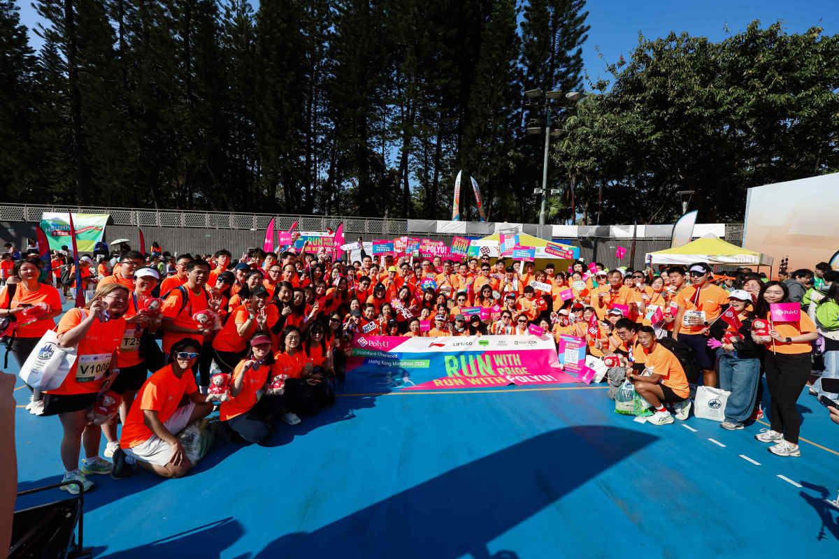 曾連續十年獲渣打香港馬拉松「最鼎力支持大獎」的香港理工大學,今日齊集管理層、學生、教職員、校友及其親友等共約3000人,共同參與這項年度體育盛事。為助力理大跑手全力備戰,理大發揮跨學科專業優勢與科研實力,以「科技+健康」全方位支援,包括自主研發的「智能步頻感應器」實時監測跑手狀態,同時提供賽前3D足部掃描及跑姿分析、個人化運動復康訓練等,實現「以研助賽、以賽促研」的雙向賦能。